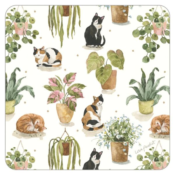 猫と観葉植物コースター(003301)MIMIKOBOYahoo店楽天市場店